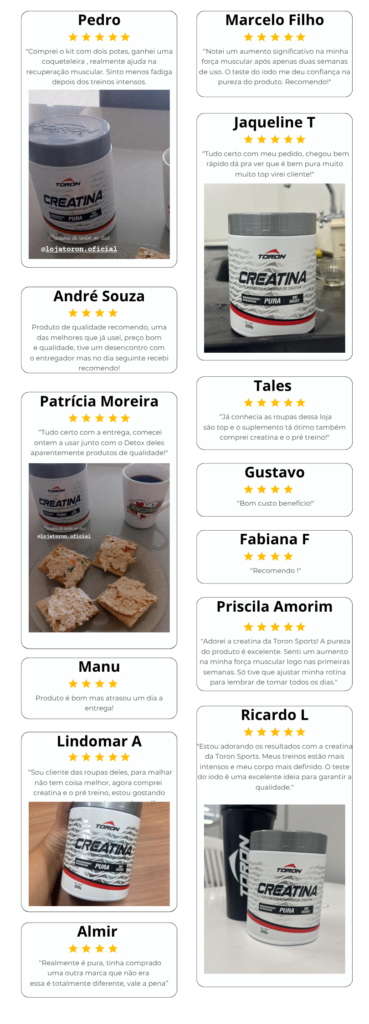 Qualidade Incomparável: A Creatina Pura Monohidratada Toron Sports é reconhecida por sua pureza e eficácia, proporcionando benefícios excepcionais para a saúde e o desempenho físico.